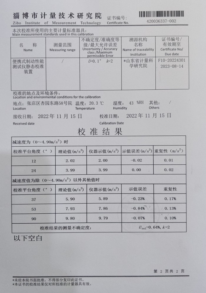b)減速度測(cè)量值為其他值時(shí),示值誤差為:±1.0 %(國(guó)標(biāo)是2%)。