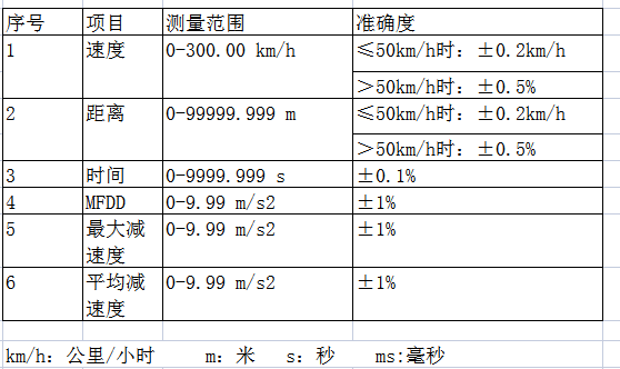 制動試驗:制動初速、制動距離、制動時間、MFDD